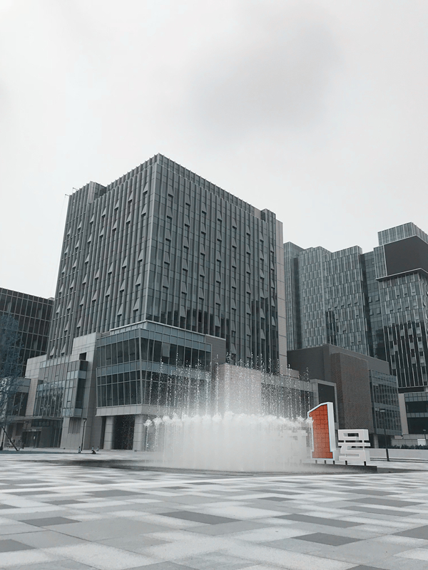 我们在此处建了一处动静集合的水景,呈镜面水景时,水面倒映出蔚蓝的天空。
