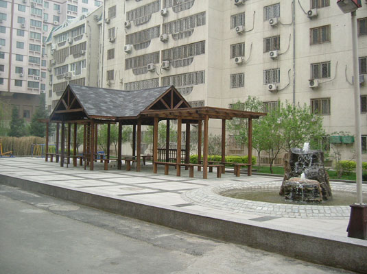 东花市小区木廊的建造和水池的建造